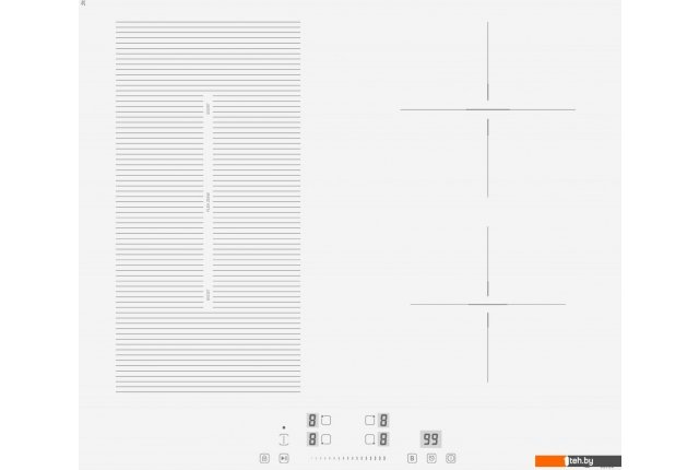 | Подробная информация о конфорках | левая передняя конфорка 180мм, 1800Вт/бустер 2200Вт --- левая задняя конфорка 180мм, 1300Вт/бустер 1500 Вт --- правая задняя конфорка 180мм, 1800Вт/бустер 2200 Вт --- правая передняя конфорка 180 мм, 1300Вт/бустер 1500Вт --- флекси зона 180*380мм 3000Вт/ бустер 3600 Вт |