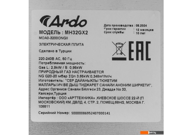 Фотографии, описание и технические характеристики модели варочной панели ARDO MH32GX2 взяты из открытых источников, официального сайта производителя или представительства ARDO в Республике Беларусь.