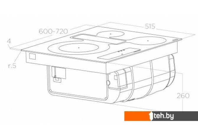 | Подробная информация о конфорках | O300 mm - 2,5/3,6 kW O180 mm - 2,1/2,5 kW O140 mm - 0,9/1,35 kW O180 mm - 1,4/2,1 kW |