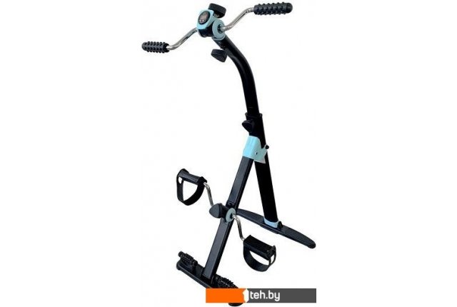 | Информация | Велотренажер DFC B812 dual bike предназначен для домашнего использования. Его основное назначение — реабилитация после операций и травм, тренировки для пожилых и людей с ограниченными физическими возможностями. Корпус выполнен в классическом чёрном цвете, который дополняют яркие голубые вставки. Трубочная система регулируется вручную при помощи рукоятей на педальном блоке и блоке руля. Для увеличения нагрузки необходимо поворачивать рукоятку по часовой стрелке, для снижения нагрузки — против часовой стрелки. Заниматься на тренажёре можно стоя или сидя, что оптимально для занятий сидячим людям. Максимально допустимый вес пользователя — 100 кг. В основании тренажёра предусмотрены ролики с пупырчатой поверхностью для массажа ног. Такими не накладками оснащены рукоятки. Монохромный дисплей отображает время занятия, число шагов, скорость, калории. В комплект входит батарейка 1,5 В (необходима для работы дисплея). |