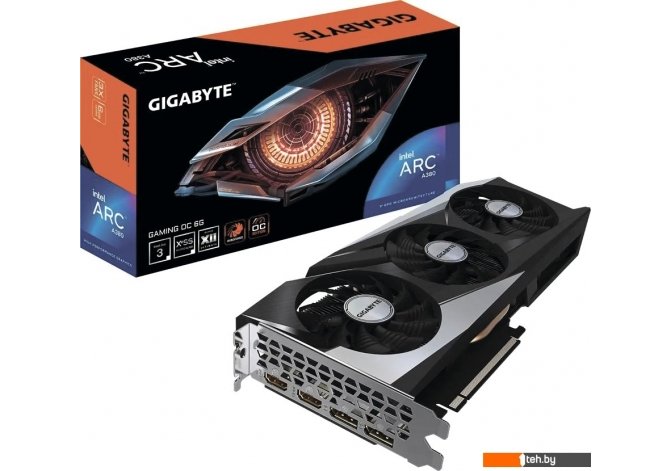 Фотографии, описание и технические характеристики модели видеокарты для компьютера Gigabyte Intel Arc A380 Gaming OC GV-IA380GAMING OC-6GD взяты из открытых источников, официального сайта производителя или представительства Gigabyte в Республике Беларусь.