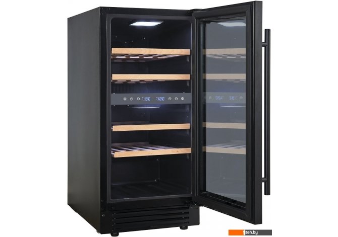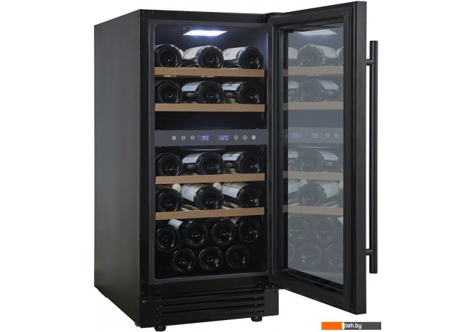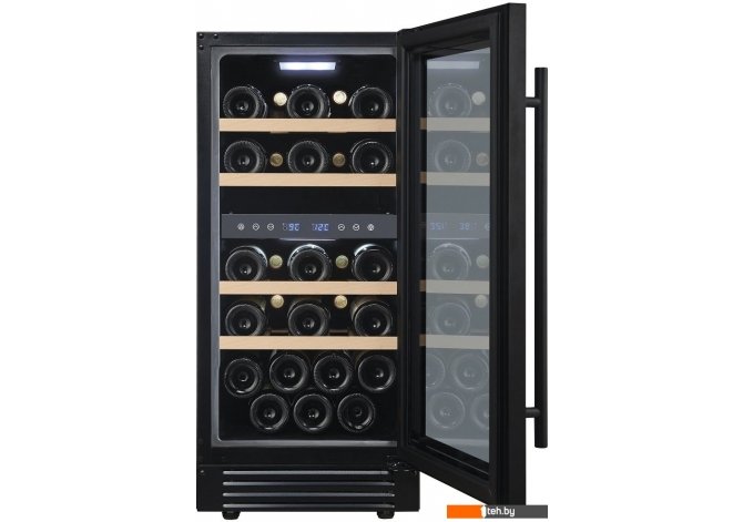 Информация | CellarPrivate CP027-2TB это двухзонный винный шкаф, вместимостью до 27 бутылок. Температура выставляется в каждой зоне раздельно, что позволяет хранить одновременно красные и белые вина. Температура в верхней зоне 5-12°С / в нижней 12-20°С. Сенсорные кнопки управления температурой и подсветкой расположены на панели за стеклянной дверцей. Данная модель винного шкафа оснащена компрессорной системой охлаждения, за счёт чего его можно использовать в достаточно тёплом помещении, при этом, он будет стабильно держать заданную температуру. CP027-2TB можно встраивать под столешницу либо в любую нишу, также можно использовать и как отдельностоящий винный шкаф. Высота регулируется при помощи ножек. Постоянное проветривание бутылок обеспечивается бесшумными вентиляторами, установленными внутри камеры это предотвращает появление посторонних запахов и образование плесени. CellarPrivate CP027-2TB оснащен четырьмя деревянными съёмными полками, на которых с легкостью разместятся любые бутылки. Дверь можно перевесить так, чтобы она открывалась справа налево. |