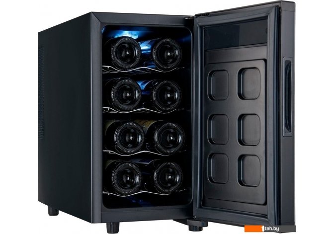 | Информация | Отдельно стоящий винный холодильник, рассчитанный на 8 бутылок. Благодаря термоэлектрическому охлаждению, винные шкафы отличаются низким уровнем шума и вибрации, что создает комфортную атмосферу для вас и ваших напитков! Эта модель винного шкафа обладает стильным дизайном с тонированным стеклом на фасаде и встроенной ручкой. Цифровой дисплей и сенсорная панель на дверце позволяют с легкостью регулировать температуру и освещение. Внутреннее светодиодное освещение и выдвижные стальные полки обеспечивают превосходный обзор ваших любимых вин. Винный шкаф предлагает одну температурную зону. Чтобы достичь заданной температуры внутри прибора (12-18°C), температура окружающей среды должна составлять 20-25°C, а вокруг винного шкафа должно быть достаточно свободного пространства для обеспечения хорошей вентиляции. |