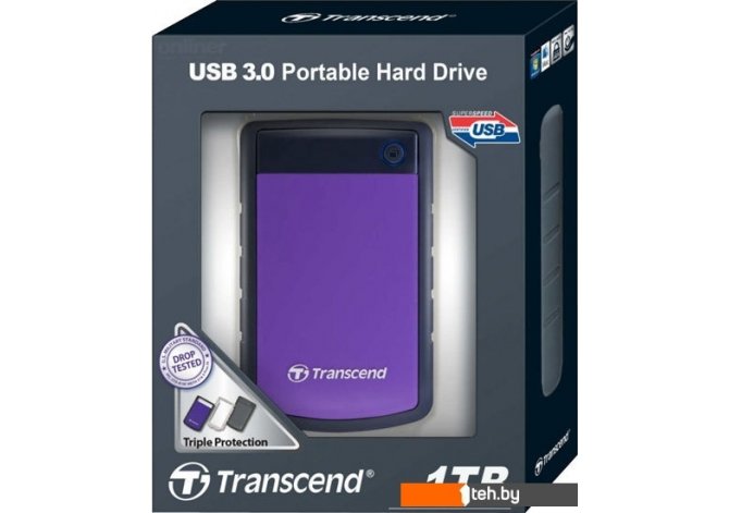 Фотографии, описание и технические характеристики модели внешнего жесткого диска Transcend StoreJet 25H3P 1TB (TS1TSJ25H3P) взяты из открытых источников, официального сайта производителя или представительства Transcend в Республике Беларусь.