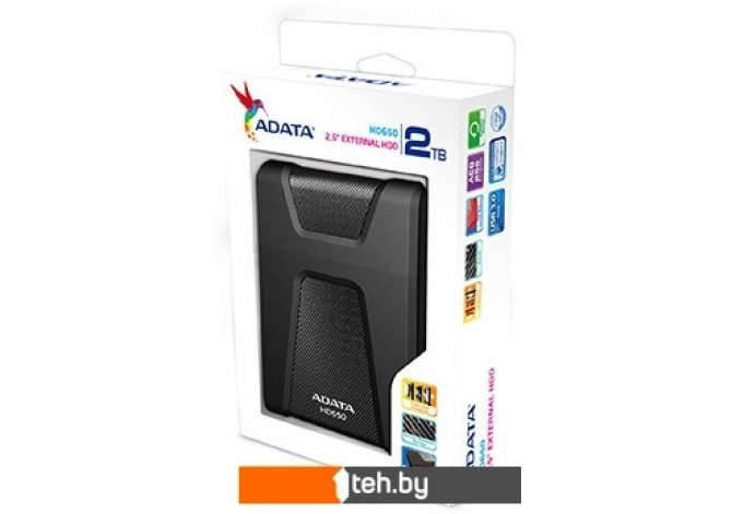 Фотографии, описание и технические характеристики модели ADATA HD650 2TB (черный) взяты из открытых источников, официального сайта производителя или представительства ADATA в Республике Беларусь.