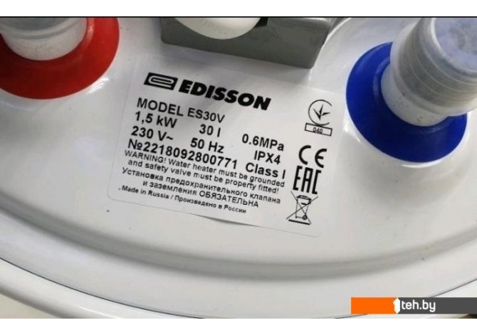 Фотографии, описание и технические характеристики модели водонагревателя Edisson ES 30 V взяты из открытых источников, официального сайта производителя или представительства Edisson в Республике Беларусь.