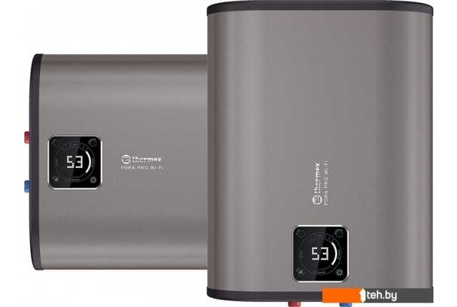 | Информация | Обновленная серия плоских водонагревателей серии Thermex Fora с технологией Wi-Fi Motion – это практичное и современное решение для вашего дома. Водонагреватель Fora PRO Wi-FI сочетает в себе передовые технологии классической серии и новые возможности, благодаря наличию сухого нагревательного элемента и управление работой через Wi-Fi сеть. Стабильная и эффективная эксплуатация. Нагрев воды в новой Thermex Fora PRO Wi-Fi производится благодаря нагревательному элементу InoxDryHeat. Этот ТЭН представляет собой колбу из нержавеющей стали, внутри которой помещены два нагревательных элемента, таким образом колба защищает ТЭНы от воздействия воды и образования коррозии. Это прочный и долговечный элемент, работающий даже в жесткой воде, отличается высокой энергоэффективностью и надежностью. Внутренний бак изготовлен из высоколегированной нержавеющей стали G.5, за счет чего имеет защиту даже на сварных швах и отлично переносит гидроудары. Оригинальный стиль и универсальный монтаж. Корпус водонагревателя выполнен по технологии Double Tank, позволяющая разместить внутри два вытянутых цилиндра. Таким образом бак становится плоским и компактным, а благодаря универсальной установке – Fora PRO Wi-Fi легко разместить как в вертикальном, так и горизонтальном положении для экономии пространства. На внешний корпус нанесено антрацитовое покрытие, которое придает водонагревателю не только свежий и современный дизайн, но также является полезным и функциональным: покрытие защищает от потертостей, бликов, не оставляет следов от прикосновений. Вариативный режим работы. При максимальной мощности 2000 Вт для моделей от 50 до 100 литров, в водонагревателе Thermex Fora PRO Wi-Fi заложены классические режимы работы: ECO использует мощность 800 Вт и регулирует настройку температуры от 35°С до 55°С; OPTIMAL работает на мощности 800, 1200 или 2000 Вт, позволяя выбрать температурный режим от 35°С до 75°С; TURBO не позволяет задать мощность на выбор, а работает исключительно на максимальной 2000 Вт, но с выбором температуры от 35°С до 80°С. Модель на 30 литров обладает максимальной мощностью 1500 Вт и выбор мощности варьируется – 600, 900 и 1500 Вт. Современные технологии комфорта. В Fora PRO Wi-Fi сохранились классические для серии функции: энергонезависимая память, которая запоминает и возобновляет последние настройки нагрева, а также режим энергосбережения для экономии потребляемого электричества. А для более комфортного управления в серию добавлена технология дистанционного управления – Wi-Fi Motion. С помощью приложения Thermex Home можно установить стабильную многопользовательскую связь между оборудованием и телефоном или планшетом, отслеживать работу оборудования удаленно из любой точки мира, устанавливать режим нагрева, мощность, температуру, программировать алгоритм работы по дням недели или времени суток и т.д. В век высоких технологий функция удаленного доступа и управления актуальна и позволяет пользователю всегда быть в курсе функционирования любого оборудования. Высокий уровень безопасности. Для еще более комфортной эксплуатации в серию Thermex Fora Wi-Fi включены опции защиты от замерзания, система самодиагностики и функция «антилегионелла» для защиты от бактерий. Также на водонагревателе установлено устройство защитного отключения для предотвращения утечки тока, а предохранительный клапан в комплекте служит 