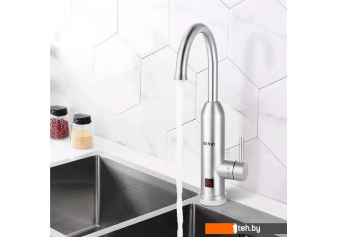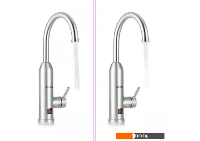 | Информация | Горячая вода дома всегда! Проточный водонагреватель КТ-4032 – это смеситель, предназначенный для быстрого нагрева холодной проточной воды. Водонагреватель отличается простотой и лёгкостью монтажа: достаточно просто закрепить его на месте смесителя и подвести к нему холодную воду. Нагрев воды до 65°C В корпусе установлен ТЭН, который быстро нагревает воду, проходящую через устройство. С помощью КТ-4032 вы можете нагревать воду до 65°C, при этом вам не нужно ждать, когда бойлер нагреется. Время использования горячей водой ничем не ограничивается. Стабильная температура воды Отличительной особенностью проточных водонагревателей является постоянство температуры воды. Температура нагрева регулируется напором воды: чем меньше напор, тем выше температура воды. Чем больше напор, тем ниже температура воды. Удобная регулировка температуры На корпусе устройства расположен дисплей, который отображает текущую температуру горячей воды. С помощью ручки-регулятора переключается подача холодной и горячей воды и регулируются напор подачи воды и температуры. Простой монтаж Прибор подключается к гибкой подводке холодного водоснабжения с внутренней резьбой и диаметром 0,5”. В комплекте идут проставка, уплотнительное кольцо, гайка, фильтр, а также силиконовые заглушки, которые снижают давление в корпусе прибора. Как обычный смеситель Для максимального удобства конструкция проточного водонагревателя предусматривает поворот крана и удобный поворот ручек-регуляторов. Аэрация подаваемой воды Аэратор насыщает воду кислородом, что способствует выветриванию хлора, также это помогает снизить уровень шума потока воды за счёт смешивания его с воздухом и экономит расход воды. |