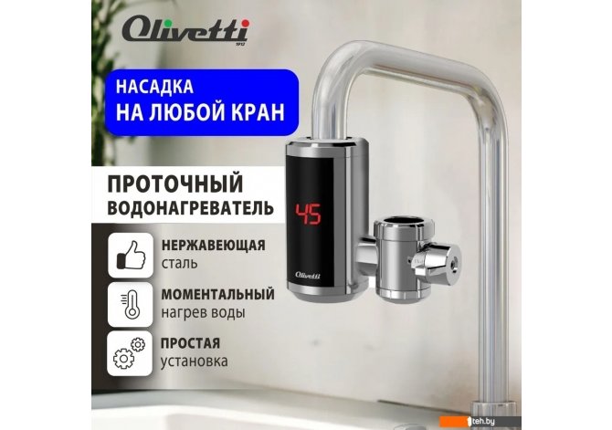 Информация | - Проточный водонагреватель OLIVETTI OL-WH4050SS - это удобное решение для тех, кто хочет всегда иметь горячую воду без установки бойлера. - В период отключения горячей воды, этот проточный водонагреватель на кране обеспечит непрерывное горячее водоснабжение для комфортного использования. - Не нужно греть воду на плите или в чайнике - достаточно включить кран и получить мгновенно нагретую воду для умывания, мытья рук или постирки легкой одежды. |