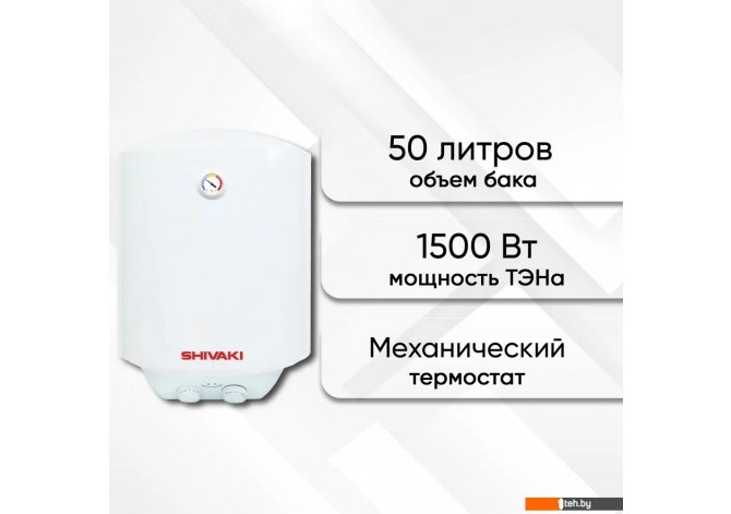 Фотографии, описание и технические характеристики модели водонагревателя Shivaki SH WH 1.5 50 (белый) взяты из открытых источников, официального сайта производителя или представительства Shivaki в Республике Беларусь.