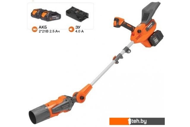 | Комплектация | - Воздуходувка- 1 шт. - Аккумулятор 2,5 Ач - 2 шт. - Зарядное устройство - 1 шт. - Плечевой ремень - 1 шт. - Руководство по эксплуатации - 1 шт. - Гарантийный талон - 1 шт. - Коробка. |