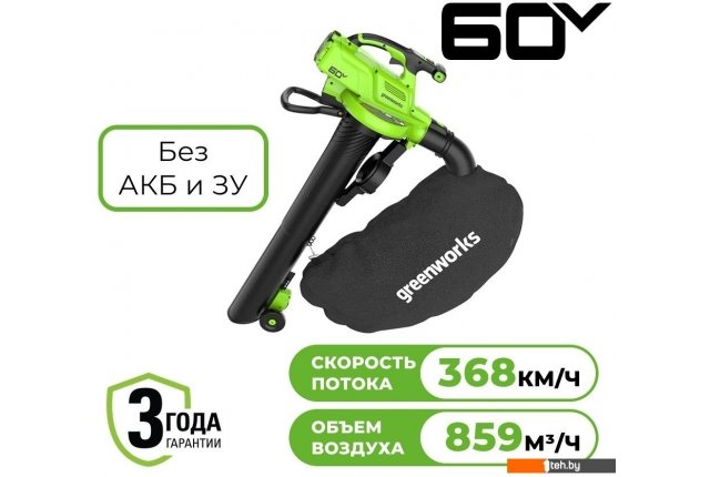 Фотографии, описание и технические характеристики модели воздуходувки Greenworks GD60BVII 2409307 (без АКБ) взяты из открытых источников, официального сайта производителя или представительства Greenworks в Республике Беларусь.