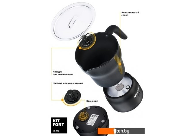 Фотографии, описание и технические характеристики модели Вспенивателя для молока Kitfort KT-710 взяты из открытых источников, официального сайта производителя или представительства Kitfort в Республике Беларусь.