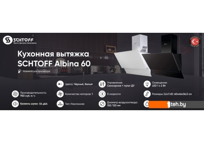 Фотографии, описание и технические характеристики модели вытяжки Schtoff Albina 60 (серый) взяты из открытых источников, официального сайта производителя или представительства Schtoff в Республике Беларусь.