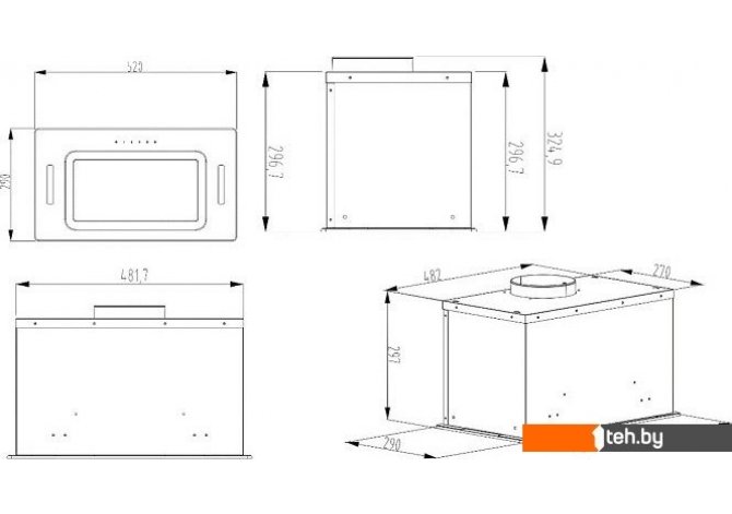 | Информация | - Вытяжка монтируется внутри навесного кухонного шкафчика, предварительно вырезая отверстие по размерам, указанным в инструкции. Оптимальная высота установки составляет 65-75 см от рабочей поверхности до нижней части устройства. - Рекомендуется минимизировать количество соединительных элементов в воздуховоде и следить за тем, чтобы диаметр вентиляционных труб соответствовал диаметру выходного отверстия. - При использовании в режиме рециркуляции обязательно устанавливайте угольный фильтр. - Установка прибора должна производиться строго по схеме из инструкции пользователя. Не забудьте ознакомиться с руководством по эксплуатации и, при необходимости, проконсультироваться со специалистом. |