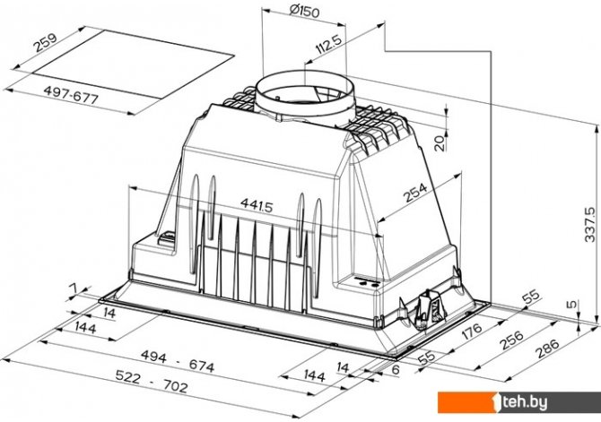 | Минимальная производительность отвода | 260 куб. м/ч |
