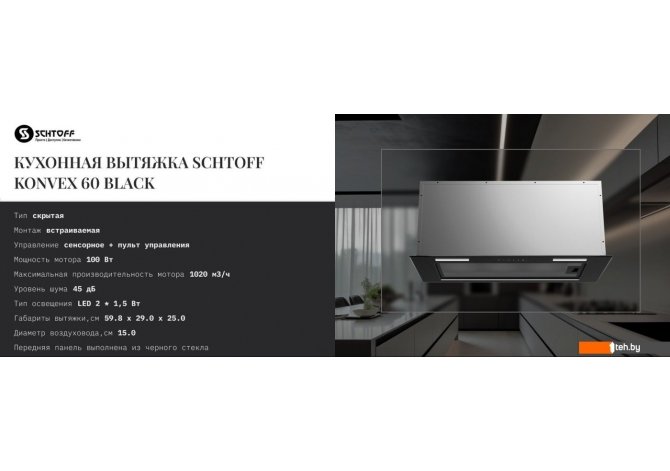 Фотографии, описание и технические характеристики модели вытяжки Schtoff Konvex 60 Black (черный) взяты из открытых источников, официального сайта производителя или представительства Schtoff в Республике Беларусь.