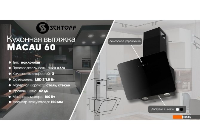 Фотографии, описание и технические характеристики модели вытяжки Schtoff Macau 60 (черный) взяты из открытых источников, официального сайта производителя или представительства Schtoff в Республике Беларусь.