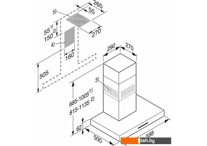 | Минимальная производительность отвода | 265 куб. м/ч |