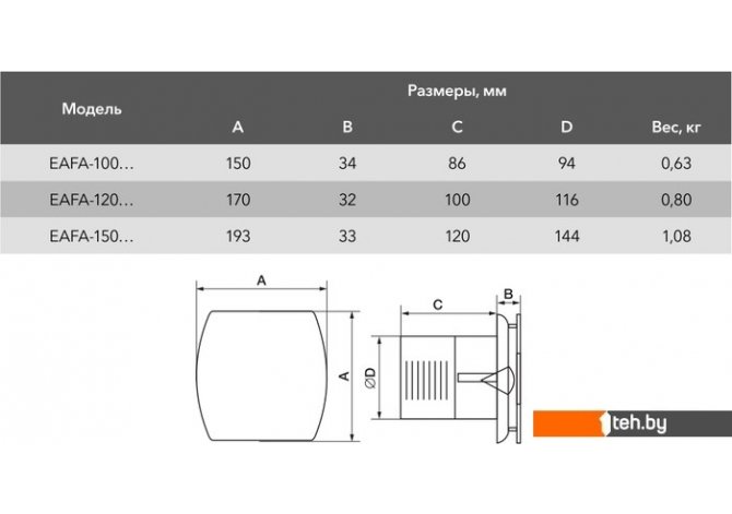 | Управление | отдельная кнопка или выключатель света, таймер (задержка отключения) |