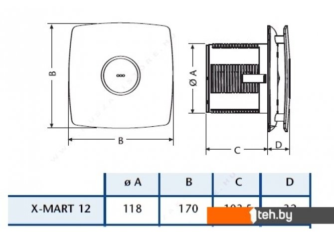 | Управление | отдельная кнопка или выключатель света, таймер (задержка отключения) |