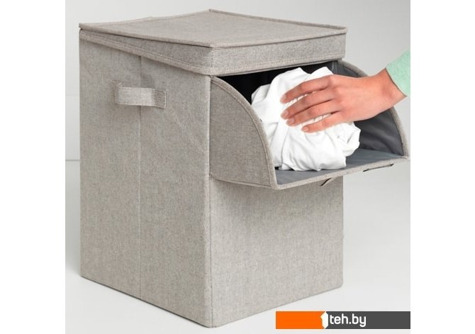 | Информация | Компактная конструкция – вместимость 35 литров.Решение для сортировки и отдельного хранения белья.Модульная система хранения – составляются один на другой.Удобно закладывать и доставать белье – открываются сверху и спереди.Удобен в переноске – небольшая масса и прочные ручки.Экономия места – складывается для компактного хранение. |
