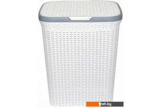 для белья прямоугольная "Вязь" 60 л с крышкой (белый)