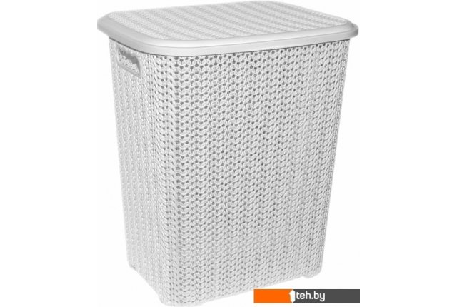для белья прямоугольная "Вязь" 60 л с крышкой (белый)