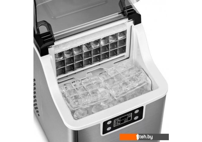 | Информация | Льдогенератор КТ-1826 — прибор для создания кубического льда. Это позволит охлаждать напитки, готовить коктейли, холодное кофе или смузи со льдом. Преимуществом льдогенератора является то, что лёд получается гораздо быстрее, чем в морозилке. |