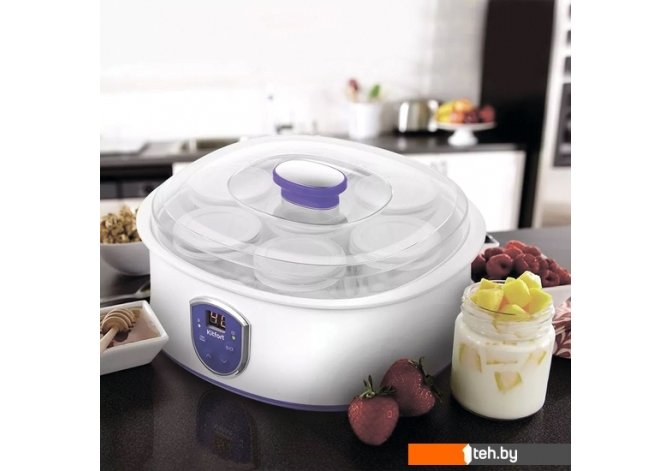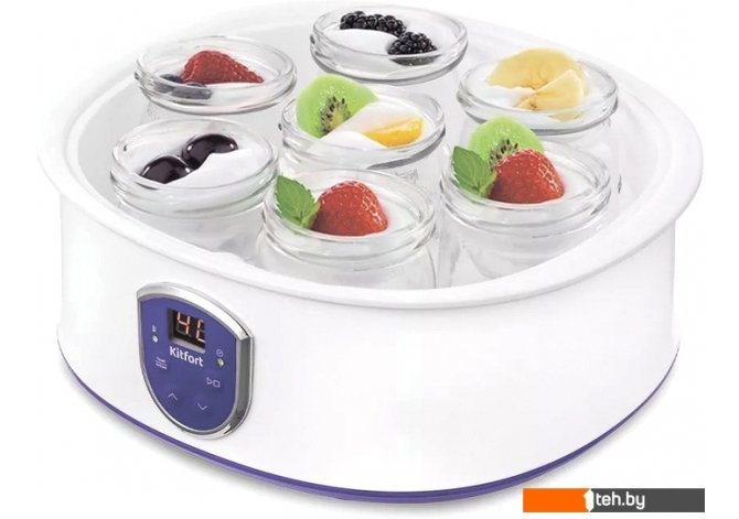 | Информация | Домашний и полезный йогурт у вас дома Йогуртница Kitfort КТ-2088 с электронным управлением предназначена для приготовления вкусного и полезного домашнего йогурта. Йогуртница равномерно нагревает баночки с ингредиентами, поддерживая заданную температуру. Регулировка времени и температуры приготовления Йогуртница имеет панель управления для установки времени и температуры приготовления и светодиодный дисплей для отображения настроек. Об окончании приготовления йогурта вас известит звуковой сигнал. Стильный дизайн впишется в любой интерьер Прибор имеет приятный дизайн. Несмотря на хорошую вместимость, йогуртница имеет небольшие габариты, что позволяет ей удачно вписаться в интерьер любой кухни, не заняв при этом много пространства. Корпус изготовлен из пластика. Дай волю фантазии! Приготовление домашнего йогурта очень увлекательный процесс, который позволит дать волю фантазии в выборе наполнителей на любой вкус! Однозначно понравится взрослым, детям и тем, кто следит за своей фигурой! Польза и безопасность В комплекте идут 7 стеклянных баночек по 180 мл, в которых готовый йогурт можно хранить в холодильнике. Стеклянные баночки сохраняют натуральные свойства домашнего йогурта, а также являются экологически чистым материалом. |