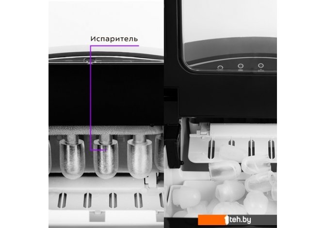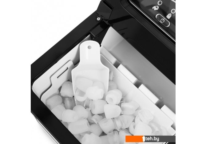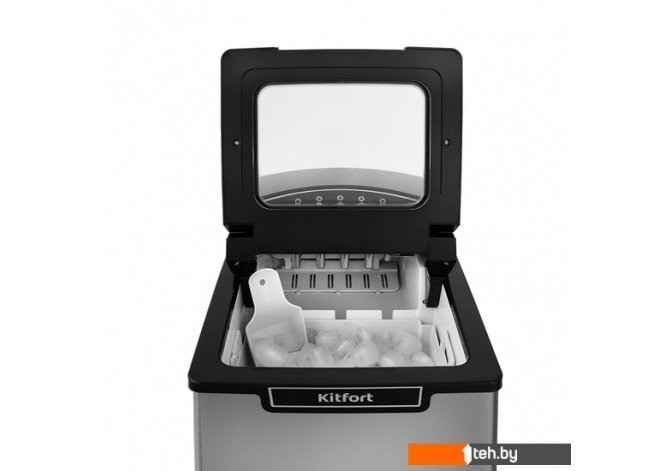 | Информация | Льдогенератор от Kitfort КТ-1807 – прибор, который быстро генерирует лёд. Его можно использовать дома для приготовления охлаждённых напитков или для охлаждения жидкостей. Например, для холодного чая, газированной воды, сока, кофе, коктейлей. Из-за оригинальной технологии приготовления лёд получается в виде напёрстков. Толщина у них небольшая, поэтому лёд легко измельчается блендером. Напёрстки компактно помещаются в стакане, при этом хорошо пропуская жидкость, которую надо охладить. Охлаждение в приборе производится при помощи компрессора с экологически чистым хладагентом R600a по принципу обычного холодильника. Вам нужно просто залить чистую фильтрованную воду в резервуар и нажать кнопку. Остальное льдогенератор сделает сам! После попадания воды в лоток для льда под испарителем, на поверхности испарителя намерзает вода. Когда лёд готов, на него подаётся горячий пар. Он начинает таять и отваливаться от испарителя. Все упавшие кусочки льда отправляются в корзину. Благодаря инфракрасному датчику заполнения корзины, при её переполнении генерация льда автоматически прекращается. В случае, если лёд достали, льдогенератор запускает цикл заново, пока корзина не будет заполнена. В комплекте идёт совок для черпания льда. Управление и выбор размера льда осуществляется с помощью кнопок на панели управления. Индикаторы сигнализируют о необходимости добавления воды, о заполнении корзины и о том, генерируется ли в данный момент лёд или прибор находится в режиме ожидания. Для того чтобы лёд получался однородного красивого цвета, вода, заливаемая в льдогенератор, подвергается дополнительной фильтрации. Если в резервуаре осталась вода, её можно легко вылить. Для этого нужно выдвинуть прибор на расстояние 60 мм от стола, подставить ведро или какую-нибудь ёмкость для воды, и вытащить сливную пробку. |