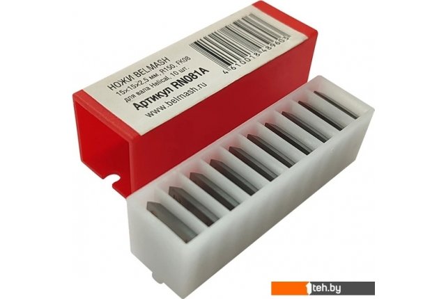 | Информация | Ножи строгальные предназначены для установки на валы Helical: - для фуговально-рейсмусовых станков BELMASH JT-2 260/225S, JT-2 260/225S-380, JT-2 310/225S, JT-2 310/225S-380, JT-2 410/225S-380; - для фуговальных станков J150/1170SAH, J150/1170ARH, J155/1170AH, BELMASH J200/1900ARH, J200/1800ARH, J300/2100ВH, J300/2100ВMH; - для рейсмусовых станков P380АRBH, P380АRBH, P500RBH, P2200MH. Поставляются в пластиковом пенале, размещены в отдельных ячейках 10 ножей размером 15?15?2,5 мм. Каждый нож имеет четыре рабочих лезвия. Угол заточки 60 град. При затуплении кромки, нож можно повернуть. Лезвия имеют форму круга (R 150 мм). |