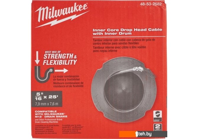 Информация | ? Сменный трос Milwaukee 48532582 для прочистной машины M12 BDC8 ? Обеспечивает быстрый доступ к водосточным трубам диаметром до 60 мм ? В комплекте есть барабан ? Диаметр троса - 8 мм |