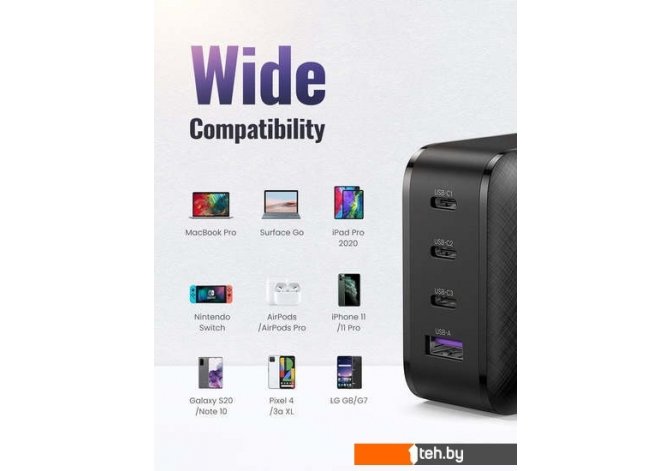 | Информация | Выход: USB-C1/USB-C2: 5 В/3 А 9 В/3 А 12 В/3 А 15 В/3 А 20 В/3,25 А 65 Вт макс. USB-C3: 5 В/3 А 9 В/2 А 12 В/1,5 А 18 Вт макс. USB-A: 4,5 В/5 А 5 В/4,5 А 5 В/3 А 9 В/2 А 12 В/1,5 А 22,5 Вт Макс. USB-C1+USB-C2: 5 В/3 А 9 В/3 А 12 В/3 А 15 В/3 А 20 В/2,25 А 45 Вт макс.; 5 В/3 А 9 В/2 А 12 В/1,5 А 18 Вт Макс. (Тип-C1/C2) + (Тип-C3/USB-A): 5 В/3 А 9 В/3 А 12 В/3 А 15 В/3 А 20 В/2,25 А 45 Вт Макс. 5 В/3 А 9 В/2 А 12 В/1,5 А 18 Вт Макс. Тип-C1+Тип-C2+Тип-C3+USB-A: 5 В/3 А 9 В/2 А 12 В/1,5 А 18 Вт макс.2; 5В/3А 15Вт Макс |